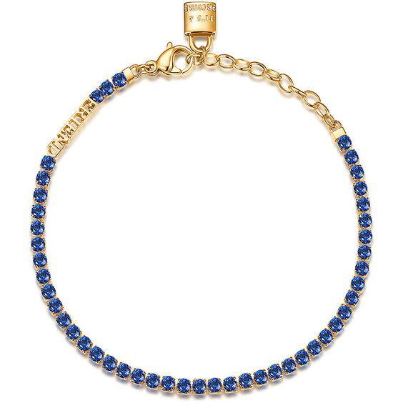 Bracciale DESIDERI affetti/amicizia Bracciale tennis in acciaio 316L e pvd oro con cubic zirconia blu, e pendente chiusura con lucchetto.