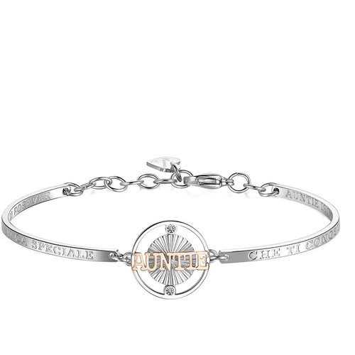 Bracciale Da Donna Di Brosway Della Collezione Chakra. Bracciale In Acciaio. La Misura Del Gioiello È 70 Mm. INCISIONE:La zia è quell'amica speciale che ti conosce da sempre (fronte) - Mia zia è fantastica –Auntie is your special friend she has known you forever (retro) La zia è quell’amica speciale che ti conosce da sempre, che mantiene i segreti e dà consigli come una sorella, che ti abbraccia come una mamma. Bracciale semirigido in acciaio 316L, pvd oro rosa e cristalli Swarovski®.