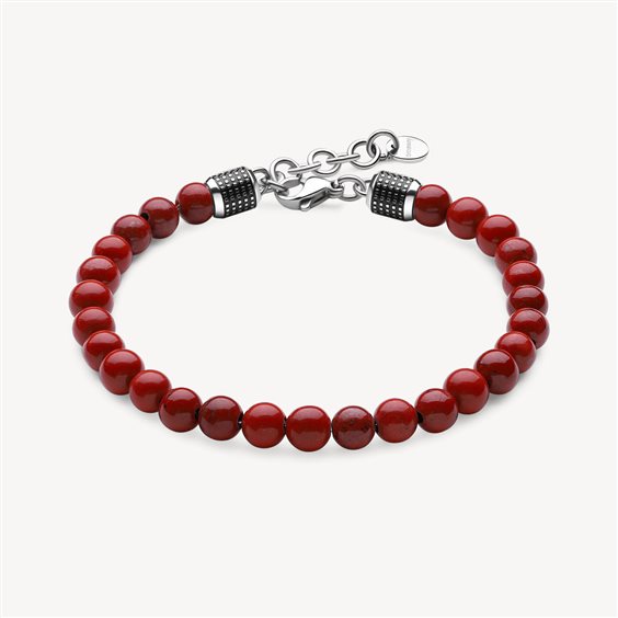Bracciale in acciaio 316L con smalto nero e sfere in diaspro rosso.