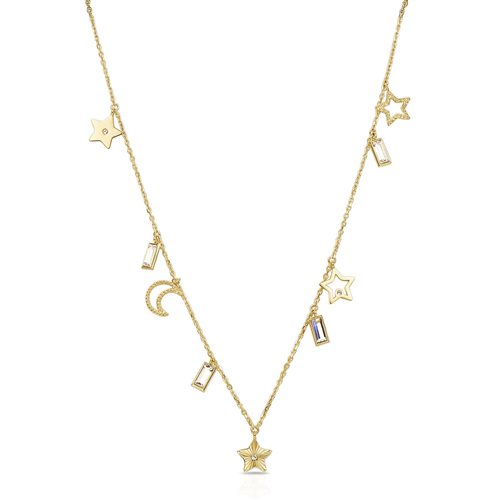 Collana in acciaio 316L e pvd oro con pendenti con simboli e cristalli Swarovski©Elements