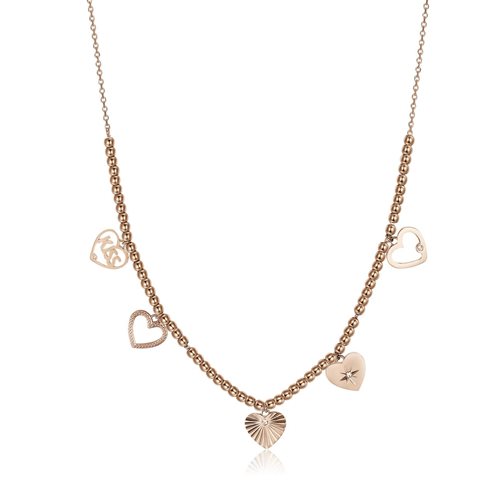 Collana in acciaio 316L e pvd oro rosa con pendenti con cuore e cristalli Swarovski©Elements crystal.