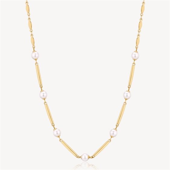 Collana in acciaio color oro giallo, con perle.