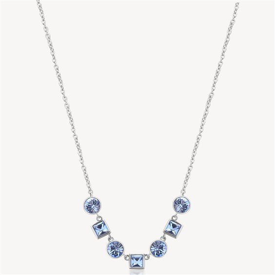 Collana girocollo in acciaio 316L e cristalli colore light sapphire.