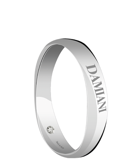 FEDE DAMIANI IN ORO BIANCO. Peso 3.0 gr. c.ca.Larghezza 4.0 mm c.ca. Con all'interno un piccolo diamantino.Caratura Diamante 0.01 ct. MISURA 10 NON REGOLABILE. E MIS 20 CODICE 20045877