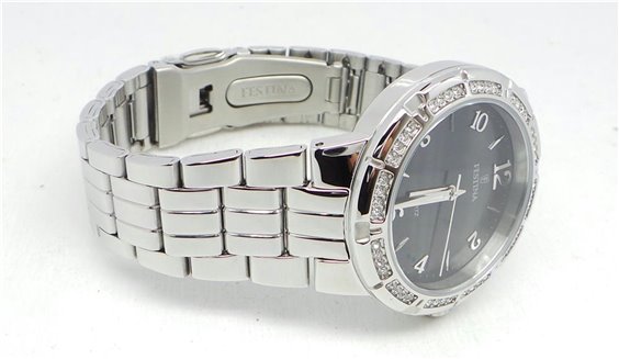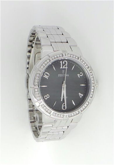 Orologio donna al quarzo, water resistant 50 mt,cassa in acciaio con cristalli, quadrante in madreperla GRIGIO SCURO cinturino in acciaio, apertura con doppio pulsante, cassa chiusa a pressione. Vetro minerale, lancette visibili al buio. L'immagine è indicativa , la confezione può variare di forma e colore.