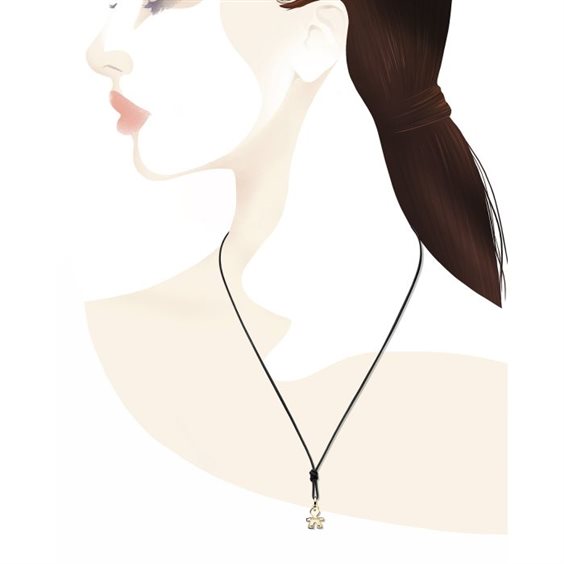 Ciondolo Bimbo in Oro Giallo 9 Kt. Corredato di cordino nero regolabile di 80 cm. Altezza: 1 cm Larghezza: 0,90 cm