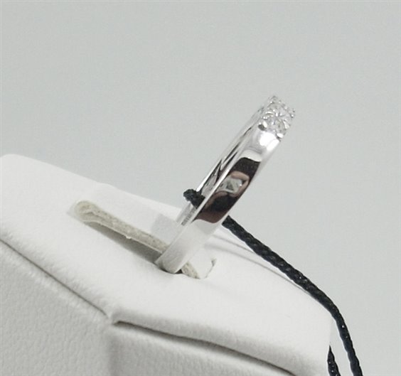 Anello a riviera 5 pietre collezione Maria Teresa realizzato in oro 750 per gr. 3,15 con bellissimi diamanti naturali taglio brillante per carati 0.35 complessivi, colore F purezza VS, diametro diamanti 3.05 mm. Si allega garanzia di autenticità che riporta le caratteristiche suddette. Misura dell'anello 14.