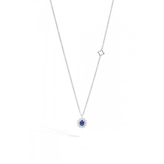 Girocollo contorno classico Recarlo Camelia in oro bianco 18kt con Zaffiro blu ct 0,44 e contorno di diamanti ct 0,13 F Vs 45cm