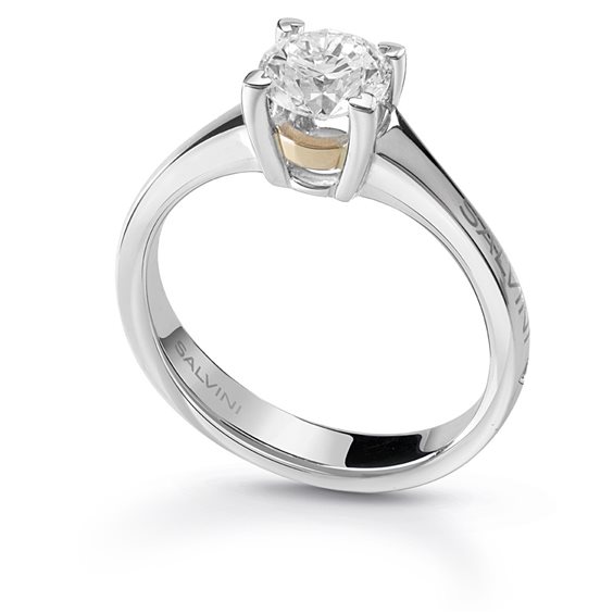 Anello solitario in oro bianco e cuore in oro rosa con diamante taglio brillante. con la messa a misura non è possibile rendere l'anello