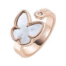 anello oro rosa con farfalla di madreperla e diamante 0.01 k mis 13