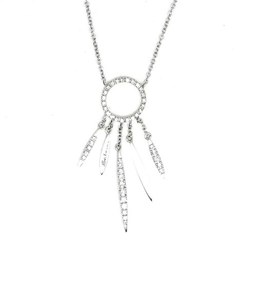 collana rolo' in oro bianco 750% (18ct) rappresentante il simbolo indiano dell'infinito impreziosito da diamanti. Peso gr 7.5/ lunghezza cm 45 regolabile a 40 grazie ad anello inserito nella catena e particolare del brillante incassato nella chiusura. diamanti taglio brillante ct 0.45 colore H purezza IF Ogni gioiello Salvini è accompagnato da assicurazione gratuita contro scippo e rapina per 3 anni.