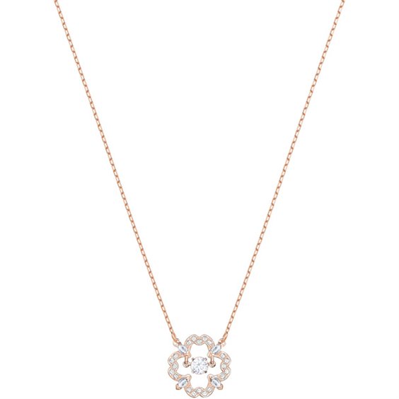 Sentiti splendida ed elegante con questa collana, ispirata all'idea di un 'dancing crystal'. Il design presenta una pietra scintillante che fluttua all'interno di una struttura. Con la placcatura oro rosa, il classico pavé scintilla con un motivo floreale per donare un tocco di glamour divertente a uno stile da giorno. Lunghezza: 38 cm
