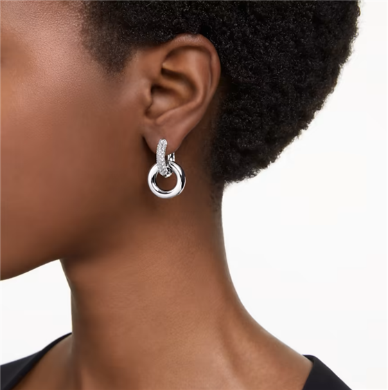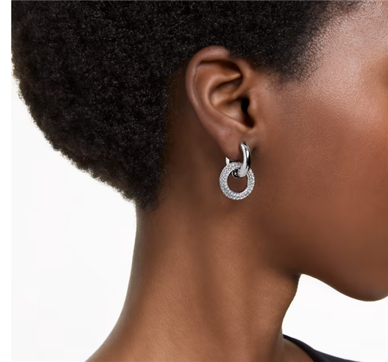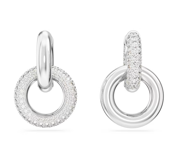 Questi orecchini a cerchio intrecciati della famiglia Dextera presentano due anelli tubolari placcati rodio, di cui uno impreziosito da pavé all-over. Per un ulteriore tocco asimmetrico, gli anelli sono disposti in modo diverso su ciascun gioiello. Inoltre, è anche possibile rimuovere il secondo cerchio per uno stile a cerchio singolo che offre una maggiore versatilità. Articolo nr.: 5671807 Collezione: Dextera Dimensione: 2.7 x 1.8 cm Materiale: Cristalli, Placcatura rodio Colore: Bianco Peso (singolo oggetto): 7.9 g