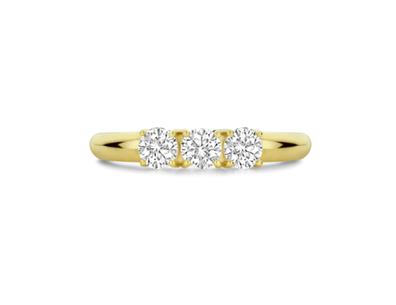Trilogy in argento dorato 925 con cubic zirconia incassate su castoni a 4 punte