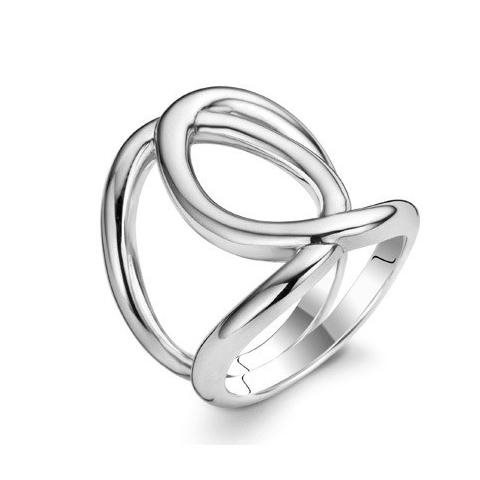 Anello Da Donna Della Marca Ti Sento - Milano. Realizzato In Argento 925 Con Placcatura Al Rodio. Gioiello Di Colore Argento. Anello Con Larghezza Superiore 23Mm, E Larghezza Inferiore 5Mm. Gioiello Dal Desing Affascinante, Stile Milanese E Realmente Femminile