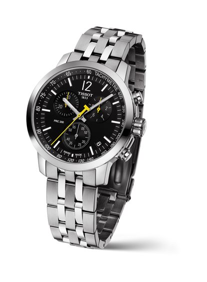 TISSOT PRC 200 CHRONOGRAPH UN MUST-HAVE CLASSICO E SPORTIVO! LA FAMIGLIA DI OROLOGI TISSOT PRC 200 È TRA LE PIÙ VENDUTE IN SENO ALLA COLLEZIONE TISSOT. Il design del PRC 200 sfoggia una lunetta ridotta, facendo apparire il quadrante molto grande e contribuendo a conferire all’orologio un look moderno e a facilitare la lettura dell’ora. L’orologio è inoltre impermeabile fino a 20 bar (200 m/660 piedi) ed è dotato di tachimetro, fondello e corona a vite. Questo modello in particolare sfoggia un quadrante nero con lancette del cronografo gialle e bracciale in acciaio con chiusura deplpyante dotata di sicurezza ed estensione epr la mutta da sub.