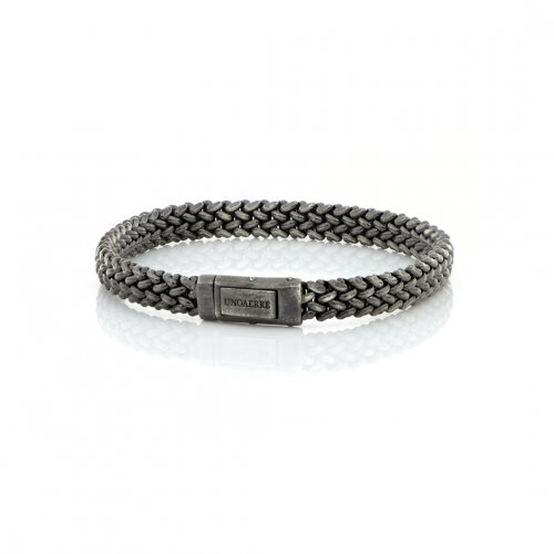 Bracciale da uomo in argento 925, maglia chicco di riso, colore brunito, rutenio. Lunghezza Cm 19,00 o 21,00.