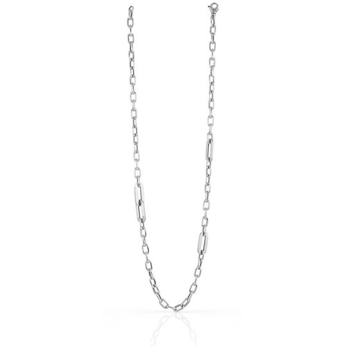 Collana lunga in argento a catena, intervallata da elementi allungtati. Chiusura a moschettone logo Unoaerre. CM 80