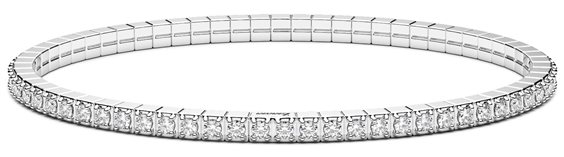Bracciale tennis in argento 925 con sistema brevettato che permette l'elasticità e la flessibilità al bracciale. Le pietre sono zirconi di colore bianco. Molto pratico per la sua veloce indossabilità visto che è privo di chiusura