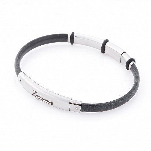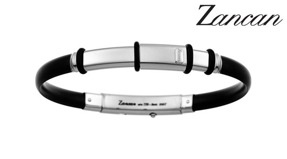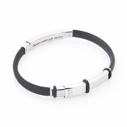 Bracciale Zancan da uomo in argento e caucciù con chiusura in acciaio a scatto.