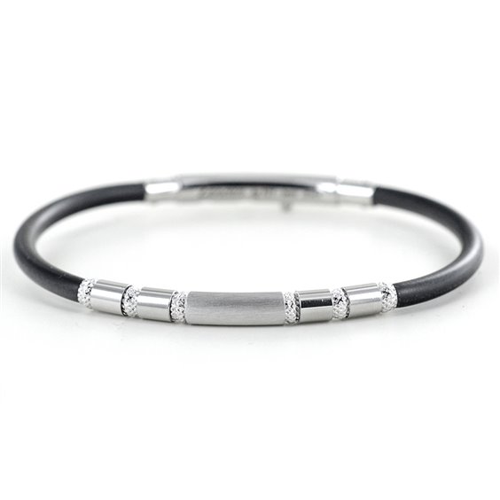 Bracciale in caucciù con inserto centrale in argento 925/000 a finitura lucida e chiusura regolabile in acciaio.