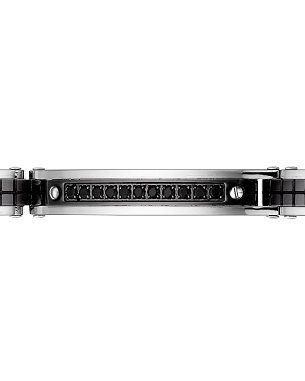Bracciale catena della collezione Zancan Hi-Teck da uomo. Colore: argento, nero Il gioiello è in acciaio inossidabile 316L con trattamento pvd oro rosa composto da maglie bicolore alternate e da inserti in carbonio. Chiusura regolabile.