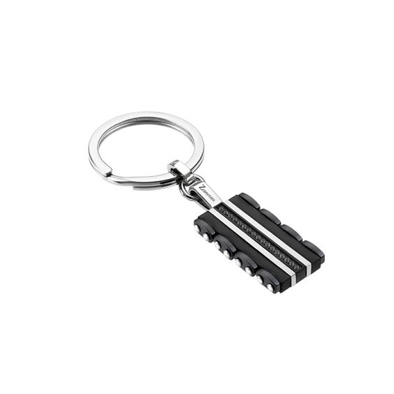 Portachiavi da uomo ZANCAN realizzato in acciaio inossidabile 316L. Pendente a forma rettangolare in pvd nero impreziosito con linea di spinelli neri ed elementi laterali in ceramica nera. Lunghezza 7 cm. Chiusura ad anello a spirale.
